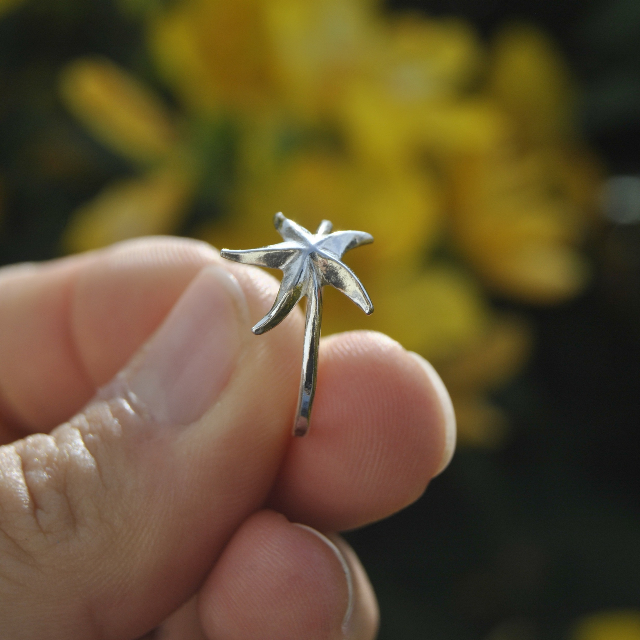 Boucles d’oreilles, collier et bague reprennent avec finesse les formes et reliefs naturels de cette créature marine.